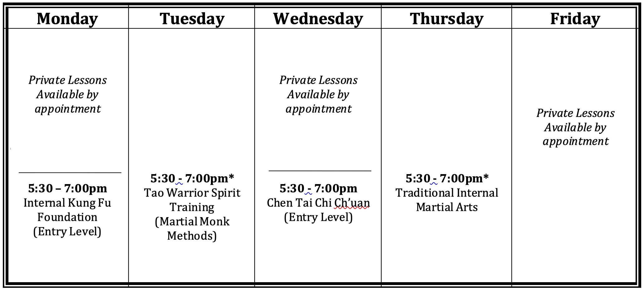 In the Tao Warrior Spirit Training class, the focus will be on strengthening the mind’s will through disciplined martial training. We will work through the body in order to attain formlessness for deep internal alchemy work and then use the formless to aid the form. This class is about change, transformation and achieving spiritual freedom through the attainment of pure stillness. Study of martial theory, qigong methods and Taoist classics are included in this class.